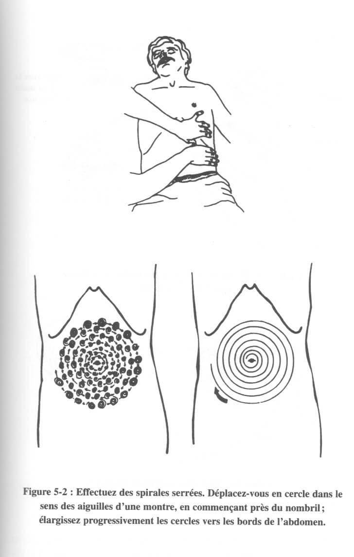Le massage peut ainsi s’étendre à tout l’abdomen à l’aide d’un massage systématique : la SPIRALE.